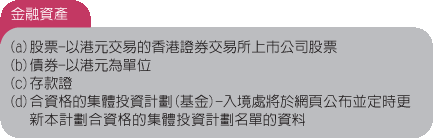 投資者須把不少於港幣1,000萬元投資于下列獲許投資資產類別: